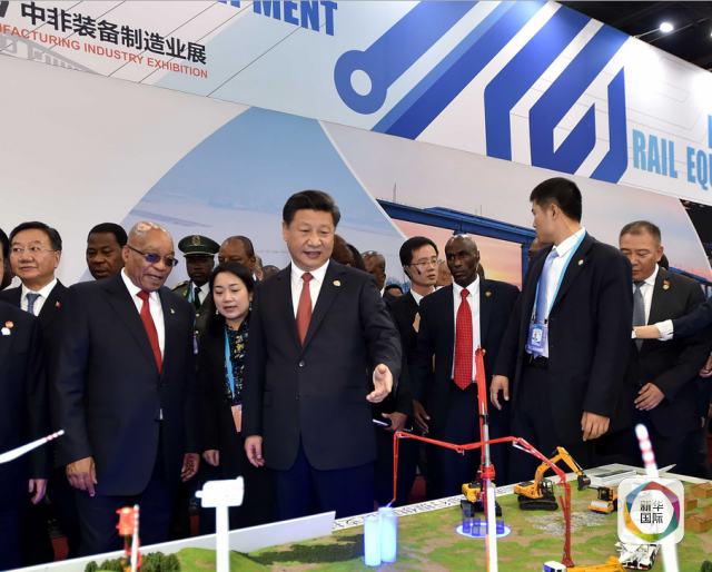 12月4日,國家主席習近平在約翰內斯堡同南非總統祖馬,非盟輪值主席、津巴布韋總統穆加貝共同出席中非裝備制造業展開幕式并為展覽剪彩。(新華社記者李濤攝)