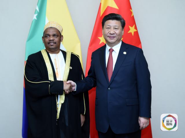 12月4日,國家主席習近平在約翰內斯堡會見科摩羅總統伊基利盧。(新華社記者張鐸攝)