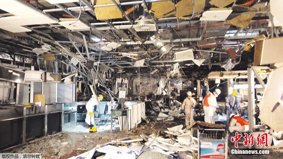 比利時遭恐襲機場內部曝光 爆炸過后一片狼藉(圖)