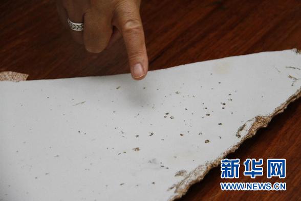 切斯特表示,殘片上的關鍵數字和字母噴碼與失事馬航客機上的噴碼完全一致,說明兩塊殘片確實來自馬航370航班客機。