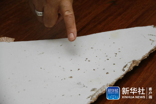 ↑這張3月3日拍攝的資料照片顯示的是,在莫桑比克首都馬普托,莫桑比克民航管理局局長若昂·德阿布雷烏在新聞發(fā)布會(huì)上向記者展示飛機(jī)殘片上密集的凹凸點(diǎn)。新華社記者 李曉鵬 攝