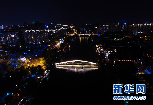 航拍杭州拱宸橋附近的的京杭大運河夜景(5月3日攝)。杭州自古多橋。斷橋、長橋、錢塘江大橋、復興大橋……古樸文雅輝映現代氣派,透出這座城市融匯古今、靈動開放的底蘊。舉世矚目的二十國集團(G20)領導人第十一次峰會將在這里舉行。有趣的是,這次峰會的會標,也是一座橋——一座由20個成員搭起的“橋”。這會是一座怎樣的橋?它能否緩解當前全球經貿河道上的種種淤塞?它能否跨越發達國家和發展中國家之間的溝溝壑壑? 全球在期待,中國在行動。新華社記者黃宗治攝