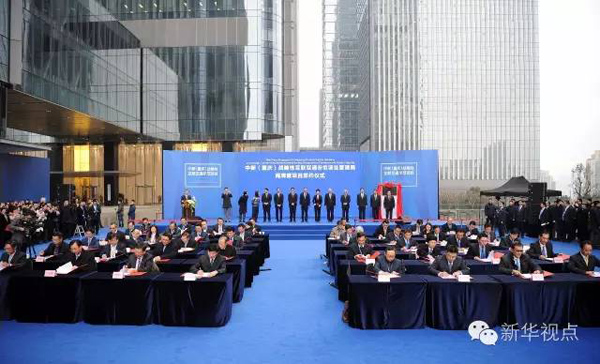 (1月8日,中新重慶戰略性互聯互通示范項目管理局揭牌,首批合作項目簽約。新華社記者唐奕 攝)