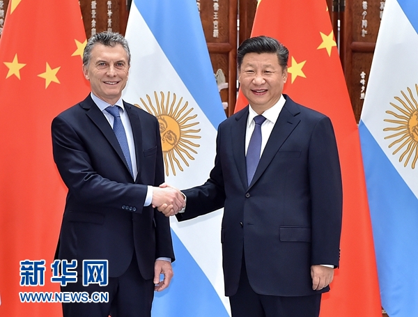 9月3日,國家主席習(xí)近平在杭州會(huì)見前來出席二十國集團(tuán)領(lǐng)導(dǎo)人杭州峰會(huì)的阿根廷總統(tǒng)馬克里。 新華社記者 李濤 攝