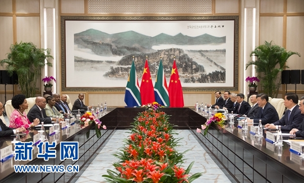 祖馬表示,南中友誼源遠流長,南非珍視南中全面戰略伙伴關系。兩國關系正不斷深化,各領域合作迅速發展。南方贊賞中方為非洲發展所做的貢獻,贊賞中方引領二十國集團領導人杭州峰會聚焦聯動發展、聯合國2030年可持續發展議程等發展議題,并特別關注非洲發展,愿密切同中方在聯合國、二十國集團、金磚國家、中非合作論壇等多邊框架內合作。