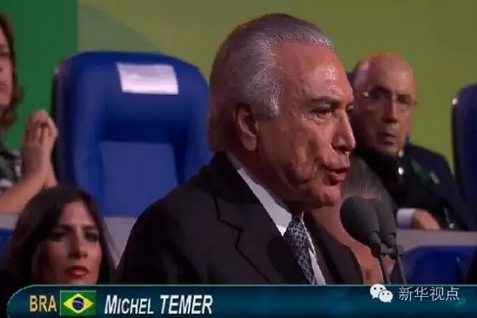 ??? 值得一提的是,出席杭州峰會的特梅爾,奧運會時的身份還是代總統,當地時間8月31日,特梅爾正式就任巴西總統,杭州峰會成為他就職后出席的首個國際會議。 里約奧運會開幕式上的特梅爾↓