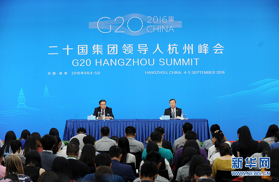 9月3日,中國代表團在浙江杭州舉行新聞發(fā)布會,商務部副部長王受文就G20杭州峰會經貿成果展望向記者介紹情況并回答提問。新華網記者?陳競超 攝