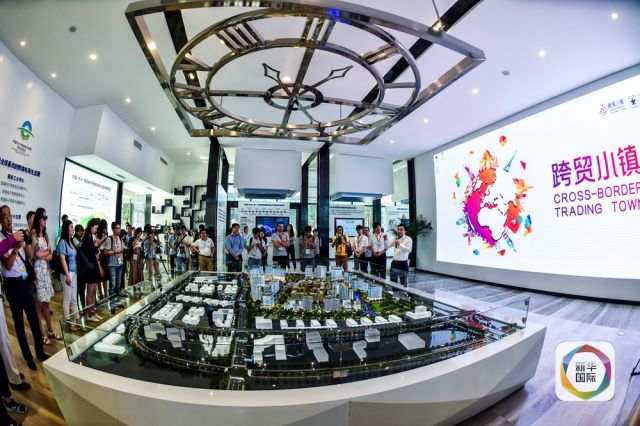 9月3日,中外媒體記者在杭州跨貿小鎮進行采訪。杭州跨貿小鎮融互聯網產業、跨境電商及旅游購物于一體,有法國、意大利、韓國等20多個國家和地區的主題館,猶如一個全球商品的展示柜。(新華社記者徐昱攝)