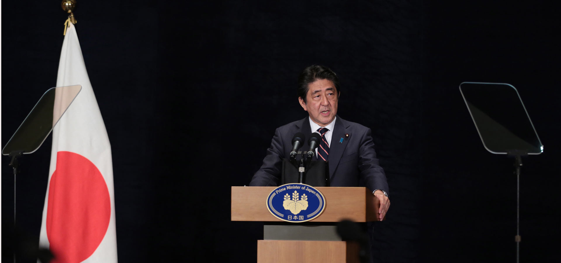 日本首相安倍晉三在杭州舉行新聞發(fā)布會