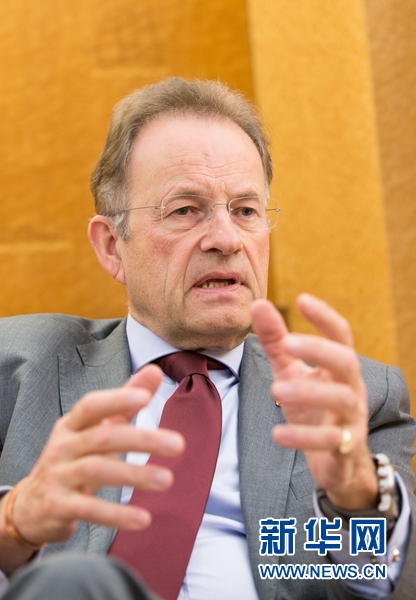 2016年12月19日,在瑞士日內瓦萬國宮,聯合國日內瓦辦事處總干事穆勒接受新華社專訪。“習近平主席的到訪,再次表明中國對聯合國多邊主義、對聯合國機構工作和對聯合國大家庭的支持?!甭摵蠂諆韧咿k事處總干事邁克爾·穆勒日前在日內瓦萬國宮接受新華社記者專訪時這樣說。新華社記者 徐金泉 攝