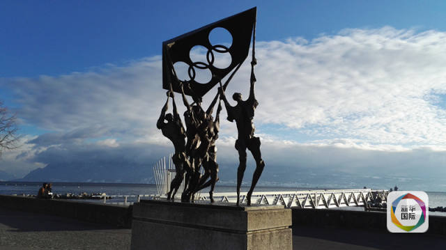 洛桑奧林匹克博物館公園對面湖邊便道上的雕塑。新華社記者高鵬攝