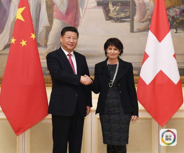 1月16日,國家主席習近平在伯爾尼同瑞士聯邦主席洛伊特哈德舉行會談。(新華社記者 蘭紅光 攝)