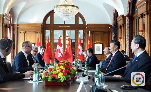 1月16日,國家主席習近平在伯爾尼會見瑞士聯邦國民院議長施塔爾和聯邦院議長比紹夫貝爾格。(新華社記者 謝環馳 攝)