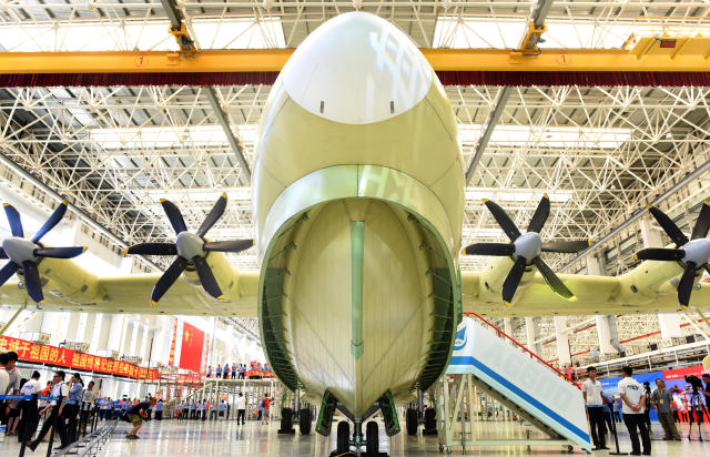 2016年7月23日,大型滅火/水上救援水陸兩棲飛機(jī)AG600在廣東珠海總裝下線。(新華社記者 盧漢欣攝)