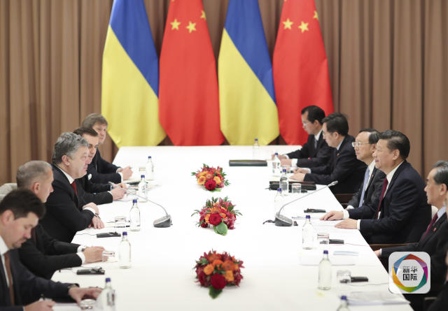 1月17日,國家主席習近平在瑞士達沃斯會見烏克蘭總統波羅申科。(新華社記者 丁林 攝)