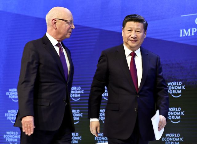 1月17日,國家主席習近平在瑞士達沃斯國際會議中心出席世界經濟論壇2017年年會開幕式,并發表題為《共擔時代責任 共促全球發展》的主旨演講。這是習近平同世界經濟論壇創始人兼執行主席施瓦布在一起。(新華社記者蘭紅光攝)