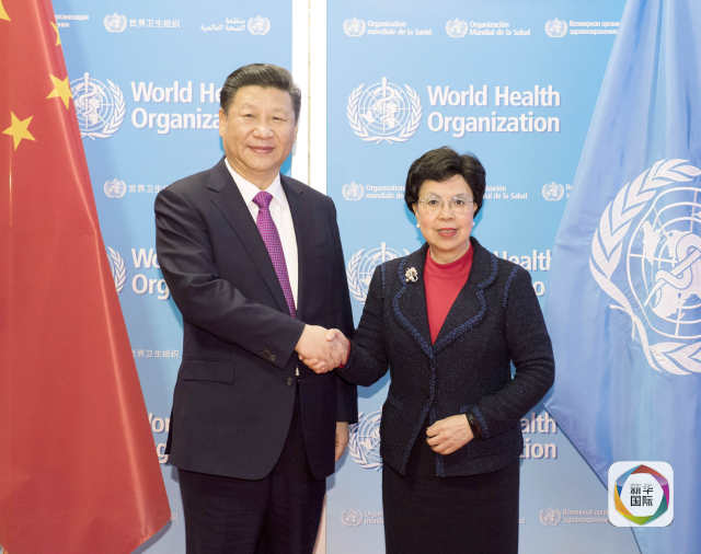 1月18日,國家主席習近平在瑞士日內瓦訪問世界衛生組織并會見陳馮富珍總干事。(新華社記者李學仁攝)