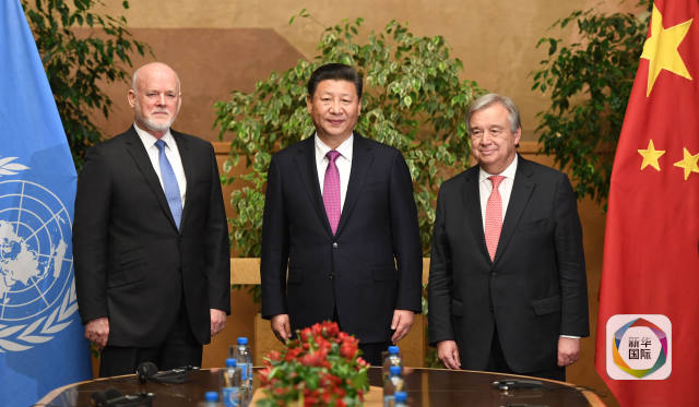 離開世界衛生組織總部,習主席來到萬國宮瑞士廳,同第71屆聯大主席湯姆森和聯合國秘書長古特雷斯舉行會見。這也是古特雷斯今年1月正式履新聯合國“掌門人”后,習主席和他的第一次會面。