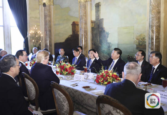 當(dāng)?shù)貢r(shí)間4月7日,國(guó)家主席習(xí)近平在美國(guó)佛羅里達(dá)州海湖莊園同美國(guó)總統(tǒng)特朗普舉行中美元首第二場(chǎng)正式會(huì)晤。這是習(xí)近平出席特朗普舉行的工作午宴。(新華社記者蘭紅光攝)