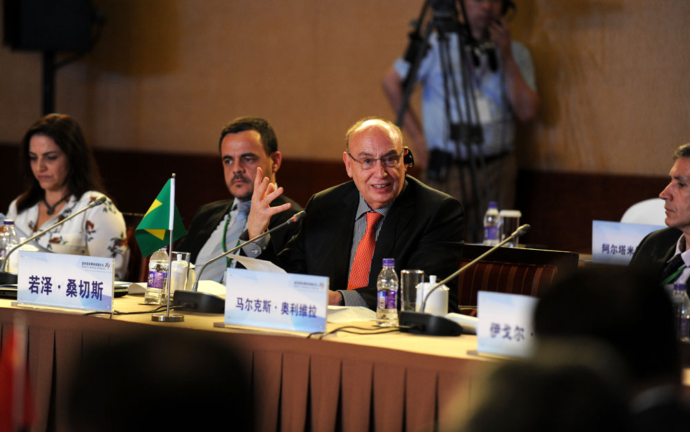 金磚國(guó)家媒體高端論壇開(kāi)幕式6月8日在北京舉行。圖為論壇共同主席、巴西金融資訊集團(tuán)總裁若澤·桑切斯發(fā)表講話。 新華網(wǎng) 孫韜 攝