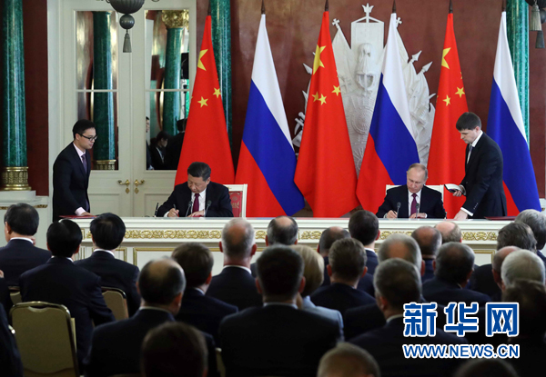 7月4日,國(guó)家主席習(xí)近平在莫斯科克里姆林宮同俄羅斯總統(tǒng)普京舉行會(huì)談。會(huì)談后,兩國(guó)元首簽署了《中華人民共和國(guó)和俄羅斯聯(lián)邦關(guān)于進(jìn)一步深化全面戰(zhàn)略協(xié)作伙伴關(guān)系的聯(lián)合聲明》《中華人民共和國(guó)和俄羅斯聯(lián)邦關(guān)于當(dāng)前世界形勢(shì)和重大國(guó)際問(wèn)題的聯(lián)合聲明》,批準(zhǔn)了《〈中華人民共和國(guó)和俄羅斯聯(lián)邦睦鄰友好合作條約〉實(shí)施綱要(2017年至2020年)》并見(jiàn)證了《中華人民共和國(guó)外交部和俄羅斯聯(lián)邦外交部關(guān)于朝鮮半島問(wèn)題的聯(lián)合聲明》以及經(jīng)貿(mào)、農(nóng)業(yè)、能源、基礎(chǔ)設(shè)施建設(shè)、金融、文化、創(chuàng)新、媒體、信息網(wǎng)絡(luò)、檢驗(yàn)檢疫等領(lǐng)域多項(xiàng)雙邊合作文件的交換。新華社記者 劉衛(wèi)兵 攝