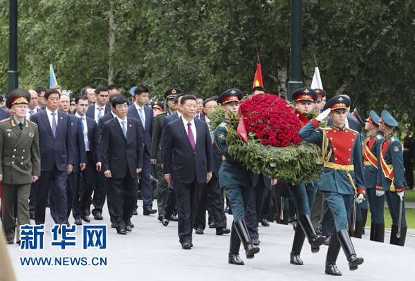 7月4日,國(guó)家主席習(xí)近平在莫斯科向俄羅斯無(wú)名烈士墓敬獻(xiàn)花圈。新華社記者 謝環(huán)馳 攝