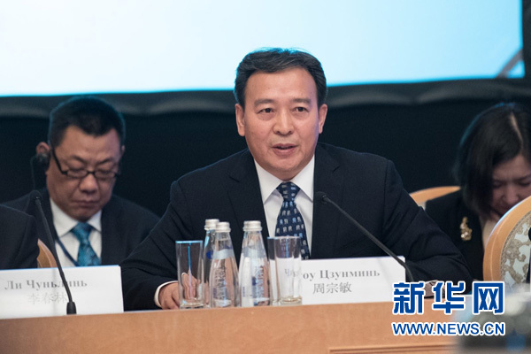 7月4日,新華社副總編輯周宗敏在第三屆中俄媒體論壇上發(fā)言。新華社記者 吳壯 攝