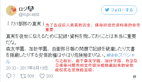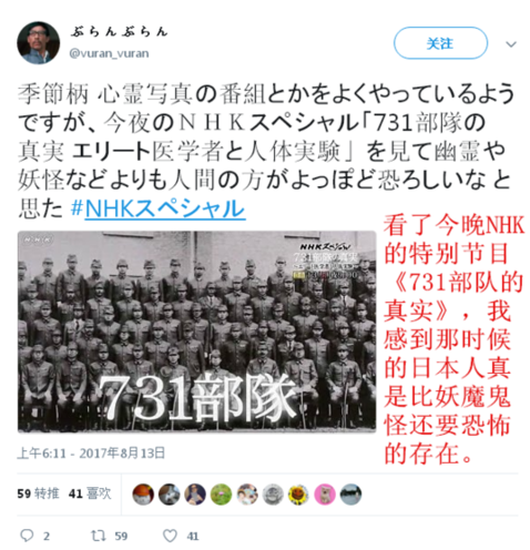 不僅如此,多名日本網友表示,日本民眾甚至大部分都不知道731部隊是怎么回事。因為盡管人類歷史上,“731”這個詞,是與恐怖、魔鬼、慘無人道、滅絕人寰等字眼聯系在一起的,日本政府卻一直拒絕承認這一段泯滅人性的歷史。京都大學醫學部資料館原本曾布置過關于731部隊細菌戰的展板,但沒多久就被撤走了。日軍731部隊“細菌戰”的中國受害者家屬曾欲赴日,卻被日本政府拒絕發放簽證。推動日中和解的民間努力,因日本外務省濫用權力而遭到阻礙。