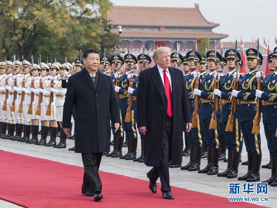 11月9日,國家主席習(xí)近平在北京人民大會堂東門外廣場舉行歡迎儀式,歡迎美利堅(jiān)合眾國總統(tǒng)唐納德·特朗普對中國進(jìn)行國事訪問。 新華社記者李濤攝