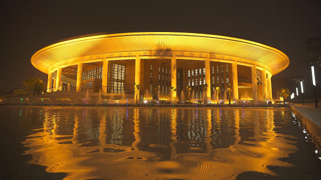 河內(nèi)西南部開發(fā)區(qū)黎光道188號,中方援建的越中友誼宮坐落于此。這座建筑呈現(xiàn)蓮花造型,外部四角布有水池,營造出一種出水芙蓉的意境。白色的立柱環(huán)抱著柚木色的主墻,典雅精致。外圓而內(nèi)方的設計,象征和諧、團結與圓滿,傳遞中越友誼長存、世代友好的深意。