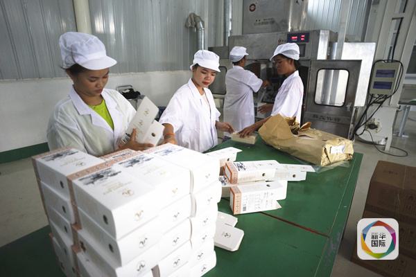 工人正在中資企業(yè)炫燁(老撾)有限公司的生產(chǎn)車(chē)間內(nèi)包裝老撾大米。(新華社記者凌朔攝)