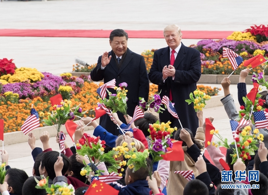 11月9日,國(guó)家主席習(xí)近平在北京人民大會(huì)堂東門(mén)外廣場(chǎng)舉行歡迎儀式,歡迎美利堅(jiān)合眾國(guó)總統(tǒng)唐納德·特朗普對(duì)中國(guó)進(jìn)行國(guó)事訪(fǎng)問(wèn)。 新華社記者李學(xué)仁 攝
