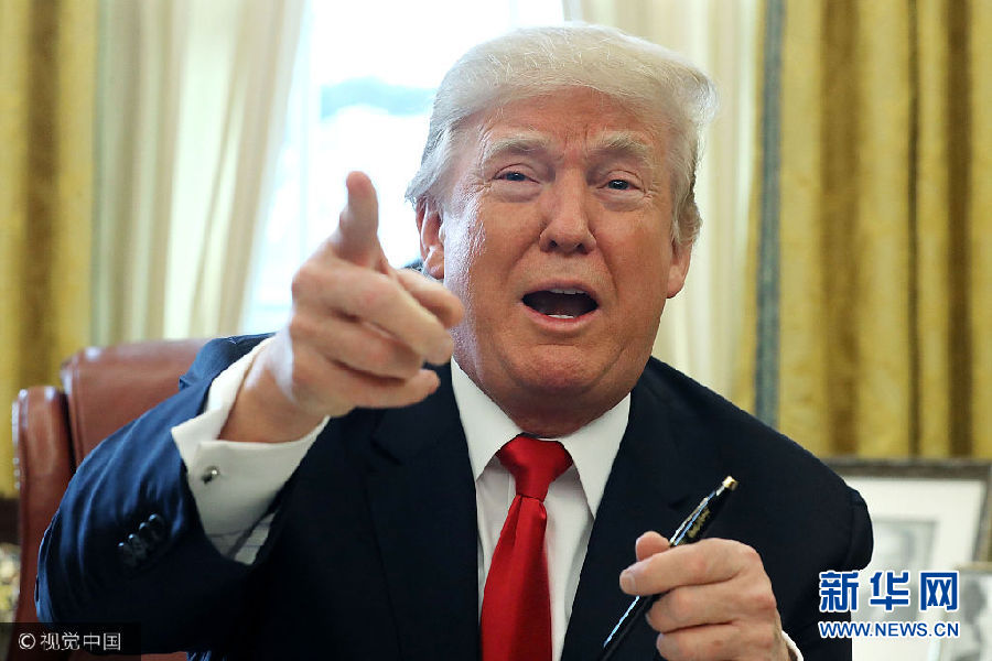 當地時間22日,美國華盛頓,美國總統特朗普在白宮的橢圓形辦公室簽署1.5萬億美元稅改法案,此乃美國最近逾30年來最大規模減稅行動。(圖片來源:視覺中國)
