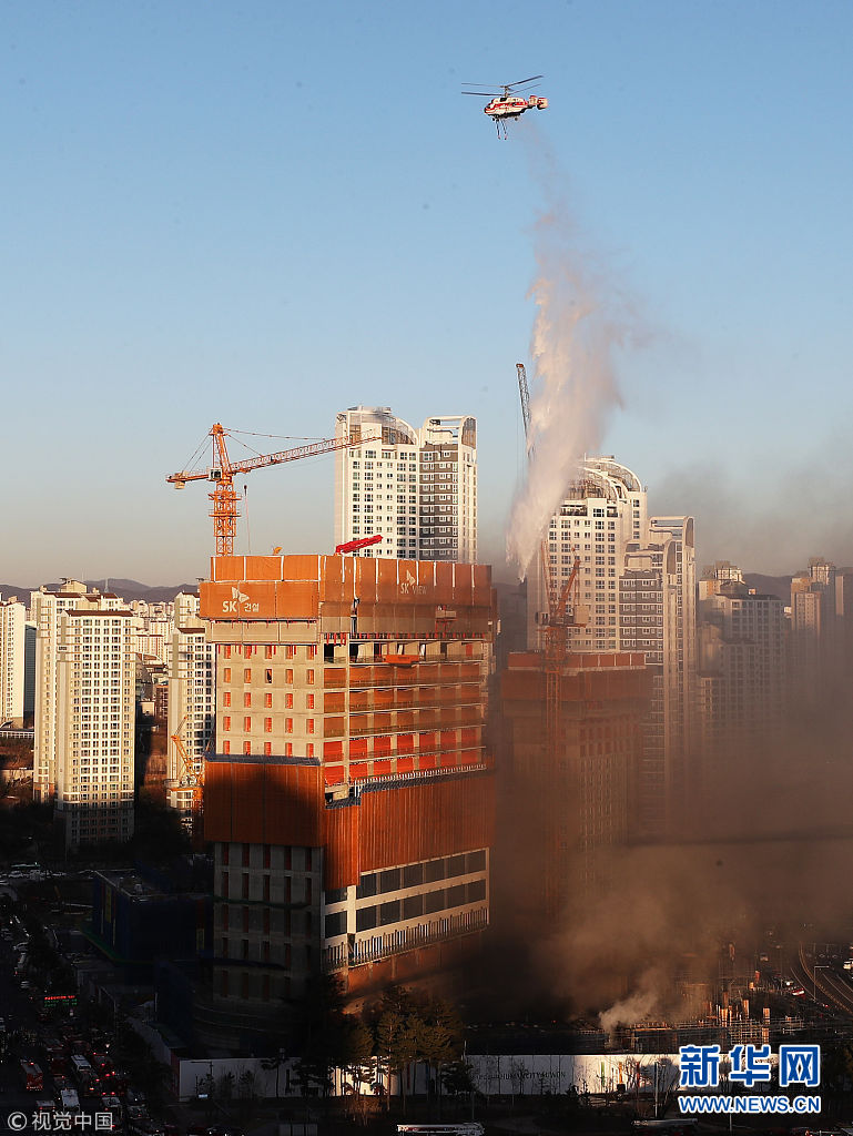 12月25日,韓國水原市,當地一處公寓施工現場發生火災,現場濃煙滾滾。(圖片來源:視覺中國)