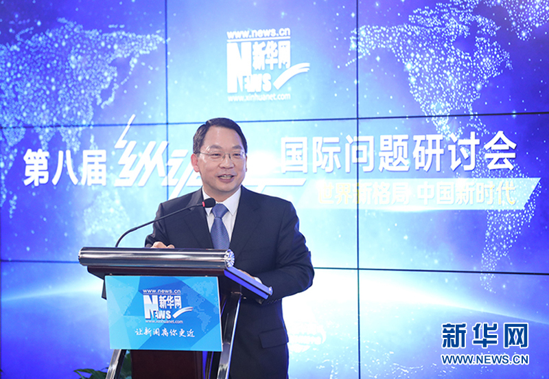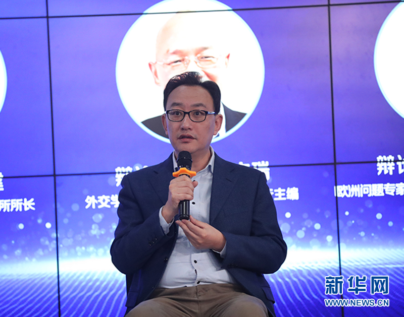 12月26日,新華網第八屆“縱論天下”國際問題研討會成功舉行。圖為中國國際問題研究院歐洲研究所所長崔洪建在主旨演講。新華網發(郭小天攝)。