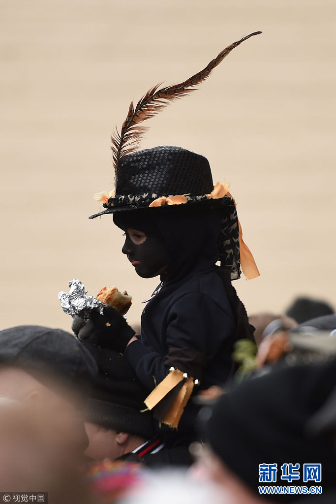 當地時間2018年1月13日,英國劍橋郡惠特爾西,民眾打扮成憨厚的“稻草熊”等各種形象,伴隨著樂隊的奏樂游行,慶祝第39屆惠特爾西“稻草熊”節。(圖片來源:視覺中國)