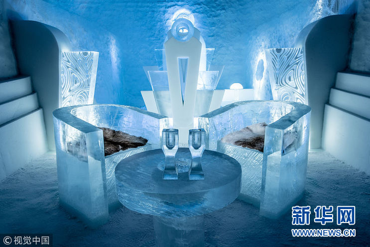 當地時間2018年1月12日,瑞典朱卡斯亞維村,瑞典冰雪酒店已在今年冬季重新開放,來自17個國家的36位藝術家參與了設計。自1989年以來,酒店每年都會在位于北極圈以北200公里處的瑞典朱卡斯亞維村莊重建,位置靠近托爾納河河畔。今年,藝術家們使用3萬立方米的冰雪建造了冰雪酒店,用500噸晶瑩剔透的天然冰制作了玻璃和冰雪酒吧。酒店擁有35個設計獨特的豪華套房、一個冰雕禮堂和一個全新的兒童樂園。在主廳里,1000個手工拋光的冰晶被制作成引人注目的吊燈。在冰雕禮堂中,有200個手工雕刻的植物裝點著墻壁。(圖片來源:視覺中國)