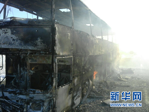 新華社快訊:據(jù)外電報(bào)道,18日哈薩克斯坦阿克糾賓州一輛公交車起火,導(dǎo)致50多人死亡。2018-01-18 15:21:53