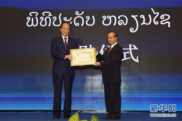 2月2日,在老撾首都萬象舉行的首屆“一帶一路”老-中合作論壇開幕式上,老撾政府向新華社及新華社社長蔡名照分別授予自由勛章,以表彰新華社長期以來為加強老中合作關系以及為老撾國家通訊社發展所作的積極貢獻。首屆“一帶一路”老-中合作論壇2日在老撾首都萬象開幕。論壇圍繞中共中央總書記、國家主席習近平去年11月對老撾進行國事訪問達成的各項成果,探討“一帶一路”倡議與老撾國家發展戰略對接,共商中老發展合作大計。新華社記者 秦晴 攝
