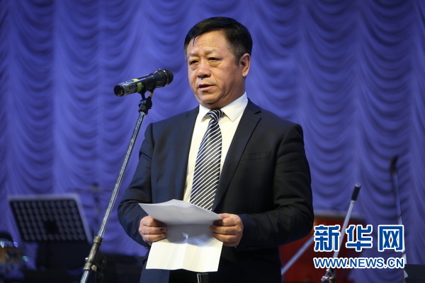 中國駐哈薩克斯坦大使張漢暉為音樂會致辭。新華網發 (阿比洛夫攝)