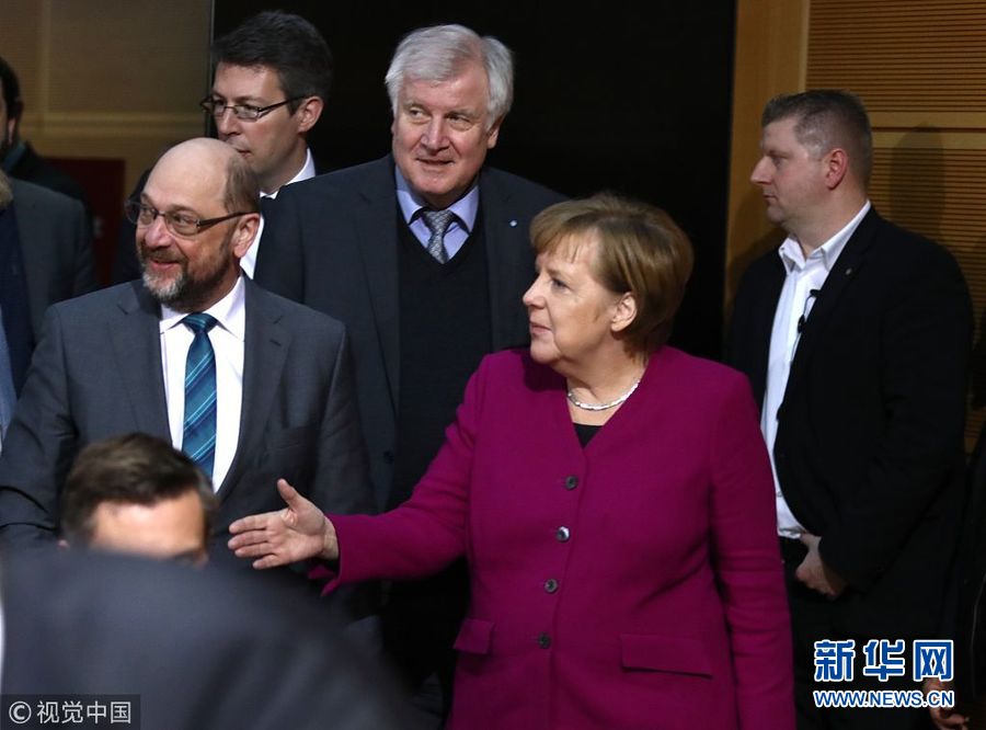 2月2日,德國柏林,德國聯盟黨(由基民盟和基社盟組成)和社民黨在社民黨總部舉行會談。(圖片來源:視覺中國)