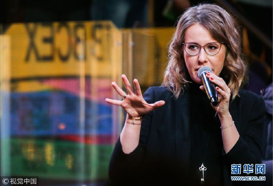 當地時間2月3日,俄羅斯圣彼得堡,俄羅斯電視節目主持人、總統候選人克謝尼婭·索布恰克會見支持者。(圖片來源:視覺中國)