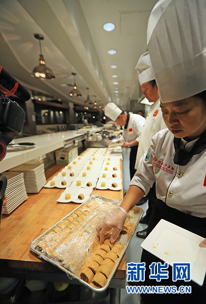 參加活動的“中華老字號”企業(yè)全聚德、東來順的頂級廚師為現(xiàn)場觀眾展示了蓑衣黃瓜、蒙面刀工等烹飪技巧,龍須拉面細如發(fā)絲,用打火機靠近,瞬間呈現(xiàn)出遇火即燃的神奇一幕。中國廚師們的精湛技藝令來賓贊嘆不已。