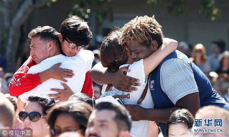 當(dāng)?shù)貢r間2018年2月15日,美國佛羅里達州科勒爾斯普林斯,民眾悼念槍擊案遇難者。當(dāng)?shù)貢r間14日下午2點25分左右,美國佛羅里達州南部帕克蘭一所高中發(fā)生槍擊案,目前已致至少17人死亡,多人受傷。(圖片來源:視覺中國)