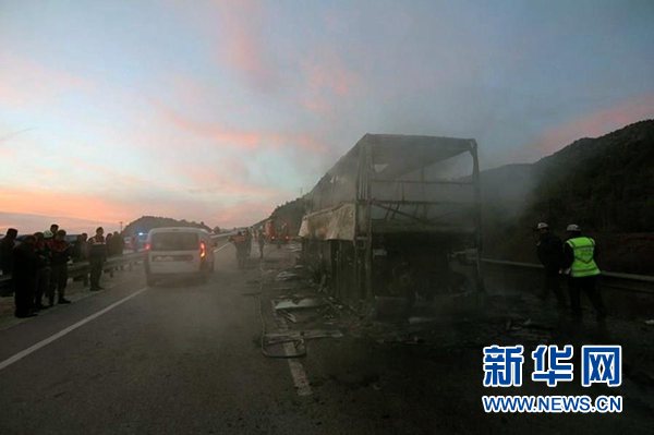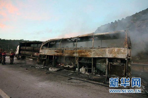 電視臺(tái)現(xiàn)場(chǎng)畫面顯示,大巴車嚴(yán)重?fù)p毀,只剩焦黑的車架。一位幸存乘客說(shuō),事發(fā)時(shí)車上乘客大多在睡夢(mèng)中。有乘客打碎車窗逃生,未能逃出的乘客則大多遭遇不幸。