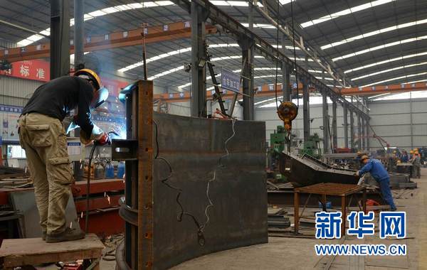 月27日,在老撾南塔省,中鐵五局工人在車間內加工鐵路施工材料。新華網發 劉艾倫攝