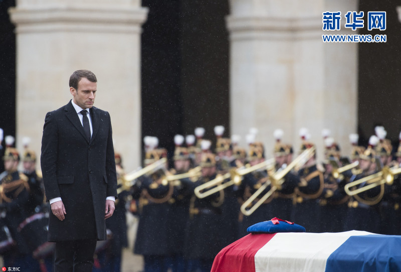 3月28日,法國巴黎,英勇殉職的法國憲兵中校貝爾特拉姆(Arnaud Beltrame)葬禮在法國榮軍院舉行。貝爾特拉姆在法國特雷布鎮恐怖襲擊事件中舍身替換人質而殉職。法國前總統奧朗德、薩科齊等多名政要出席貝爾特拉姆的國葬。法國總統馬克龍為其授予法國榮譽軍團勛章。