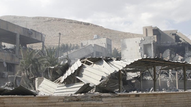 在敘利亞首都大馬士革東北部的拜爾宰區(qū),一處科研中心成為14日凌晨美英法軍事打擊敘利亞的目標之一。襲擊發(fā)生后,記者看到成片的建筑已淪為廢墟。2018-04-15 11:47:02