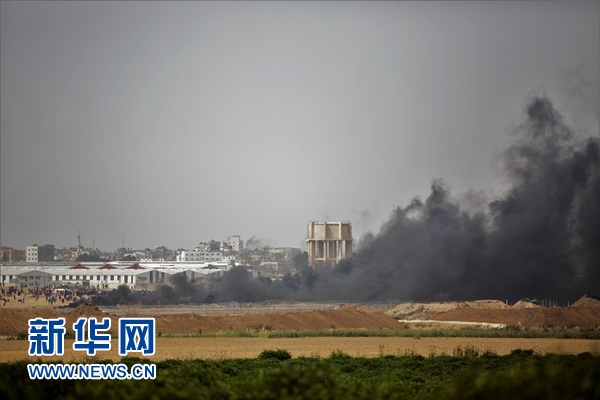 4月20月的以色列-加沙邊境沖突現(xiàn)場。新華網(wǎng)發(fā)