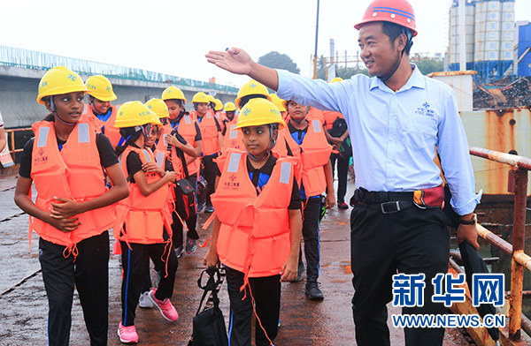 “大橋還有多久能建好?”“建橋是不是很難?”“工人叔叔們有沒(méi)有危險(xiǎn)?”……孩子們整齊地排成兩列走在大橋上,一邊好奇地四處望著,一邊連珠炮似的向身邊的中國(guó)工人叔叔發(fā)問(wèn)。
